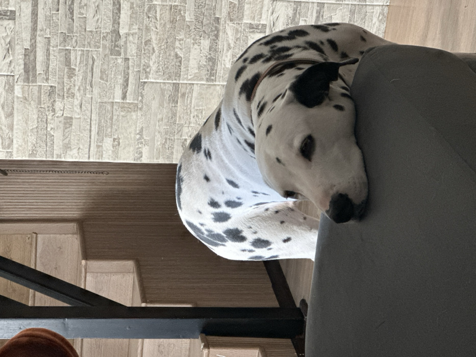 - "A Dalmatian dog rests its head on a gray sofa" by FM-Vxs4z2, licensed under CC BY 4.0