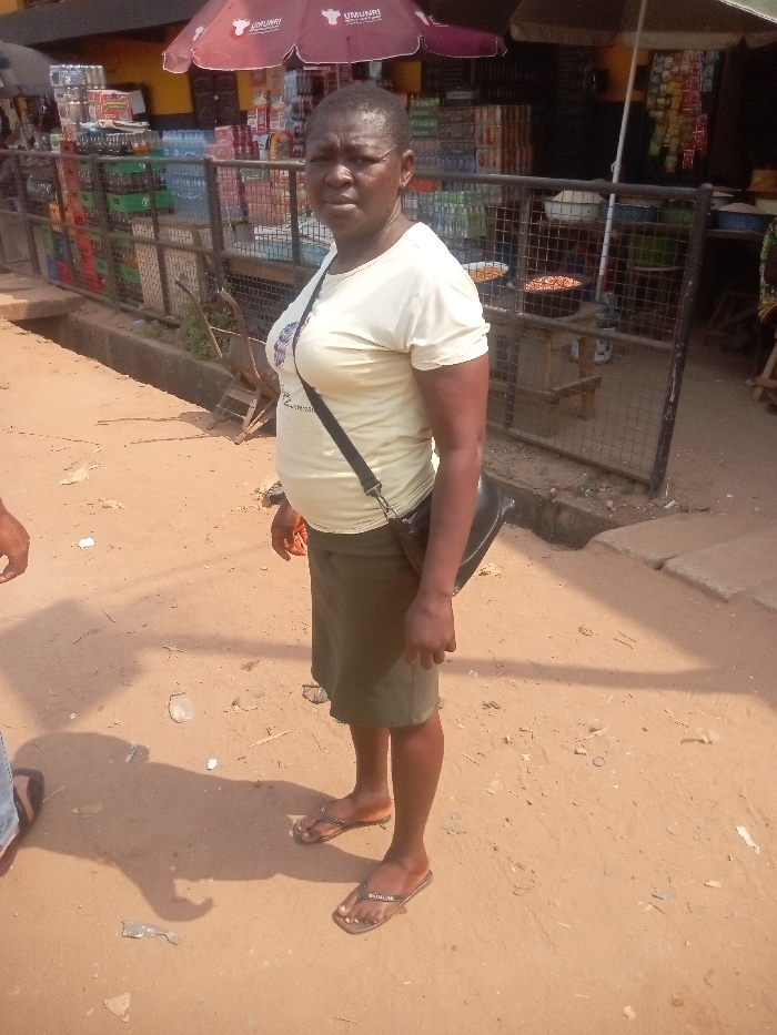 An individual stands on a reddish-brown dirt path in Enugwu-Ukwu, Nigeria