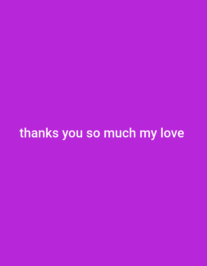 The scene consists of a solid, uniform purple background. White sans-serif text is positioned in the lower-middle portion of the frame. The text reads: "thanks you so much my love". There are no individuals, objects, actions, or interactions depicted in the image beyond this text and background. The location is in the city of Unknown, Unknown.