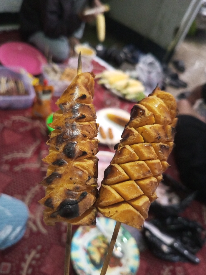 - "The image displays two grilled food items on wooden skewers positioned in the foreground" by FM-7AeF33, licensed under CC BY 4.0