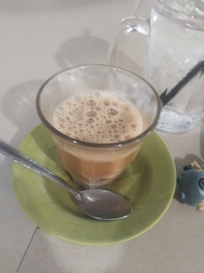 - "The image depicts a close-up, high-angle view of beverages and associated items on a light grey surface, likely a table, in Lhokseumawe, Indonesia" by FM-LtliS2, licensed under CC BY 4.0