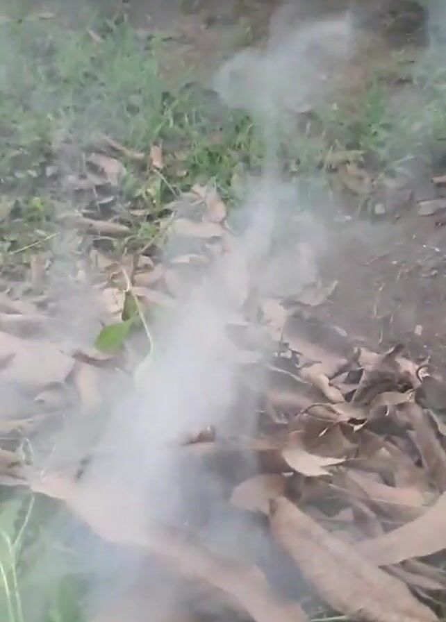 - "close-up of a pile of dry leaves emitting white smoke" by FM-G8tBf1, licensed under CC BY 4.0