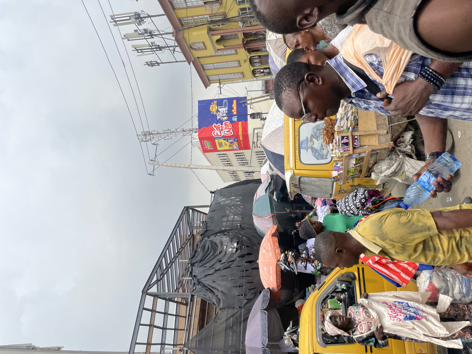 - "This image captures a bustling street market scene in a commercial district of Lagos, Nigeria, likely during daytime under an overcast sky" by FM-pkoDq2, licensed under CC BY 4.0
