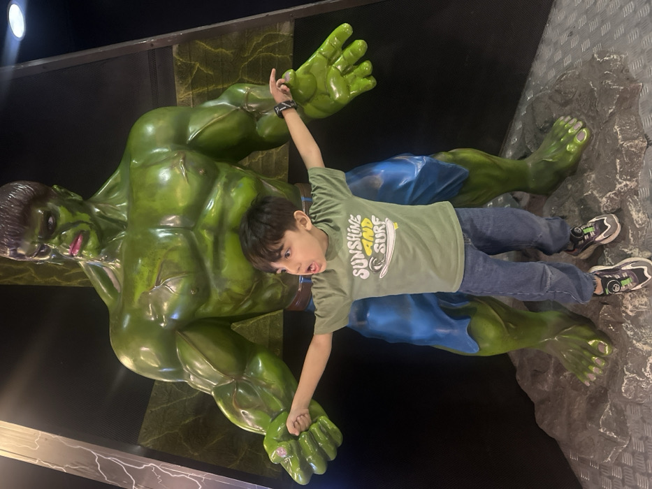 - "A young boy lies atop a statue of the Hulk, seemingly embracing the green behemoth" by FM-shBps1, licensed under CC BY 4.0