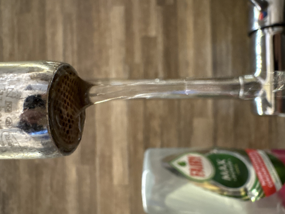- "A close-up image captures a chrome-plated faucet aerator from which a steady stream of clear water flows downwards" by FM-re7Sv1, licensed under CC BY 4.0