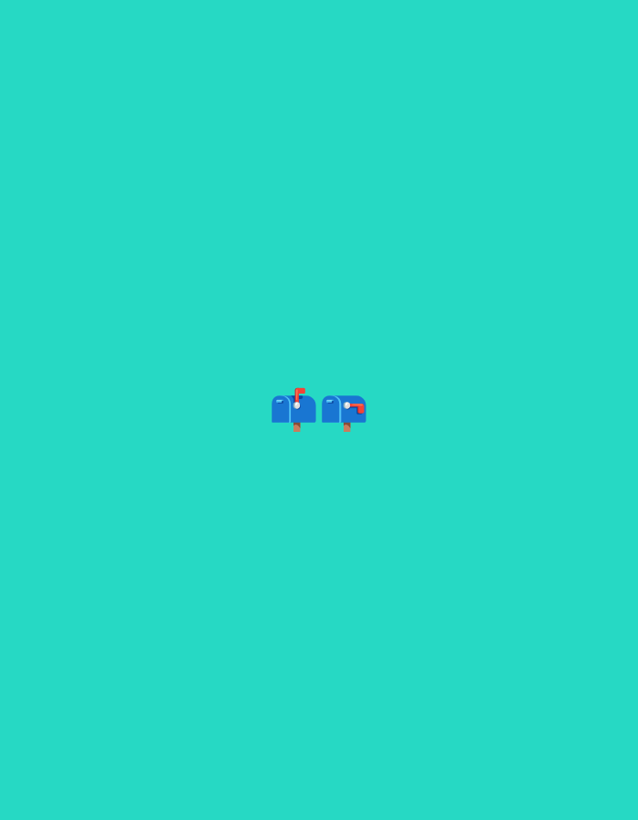 The scene is located in the city of Netanya, Israel. The image displays a minimalist composition set against a solid teal-green background. Two stylized, blue rectangular mailboxes are centrally positioned and horizontally aligned. The mailbox on the left features a red flag in an upright position. The mailbox on the right features a red flag in a lowered position. No individuals, explicit actions, or interactions are depicted. The environment is abstract, consisting solely of the uniform background color and the two primary objects.