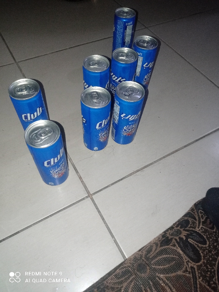 - "This indoor photograph, captured in Khan Yunis, Palestinian Territory, depicts eight blue aluminum beverage cans arranged on a light-colored tiled floor" by FM-iymI62, licensed under CC BY 4.0