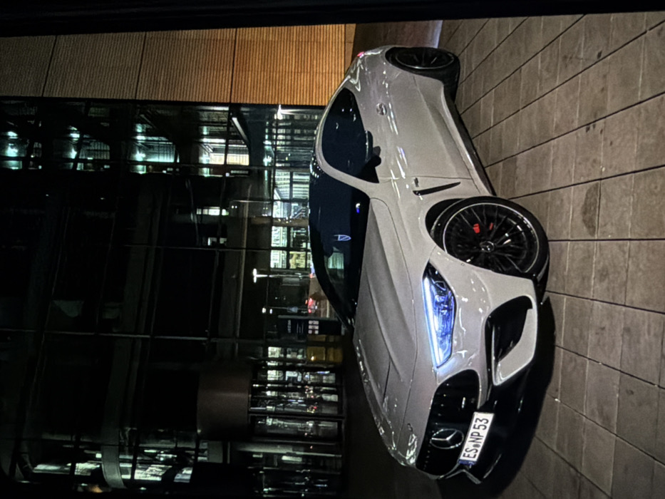 - "A white Mercedes-Benz AMG GT 4-Door Coupe is parked at night on light-colored square paving stones in front of a modern, multi-story building" by FM-ESoMI3, licensed under CC BY 4.0