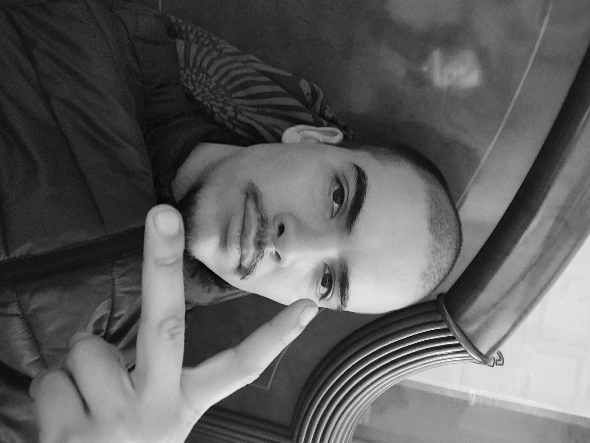 - "The scene is an indoor, black-and-white, close-up portrait of a single male individual, purportedly located in Sabadell, Spain" by FM-tgonR2, licensed under CC BY 4.0