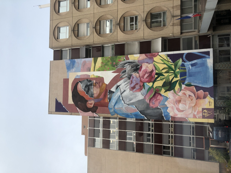 - "A large-scale mural, measuring several stories high, adorns the light beige concrete facade of a building located at 10-12 Rue de Valmy, 75010 Paris, France" by FM-R1Zyf2, licensed under CC BY 4.0