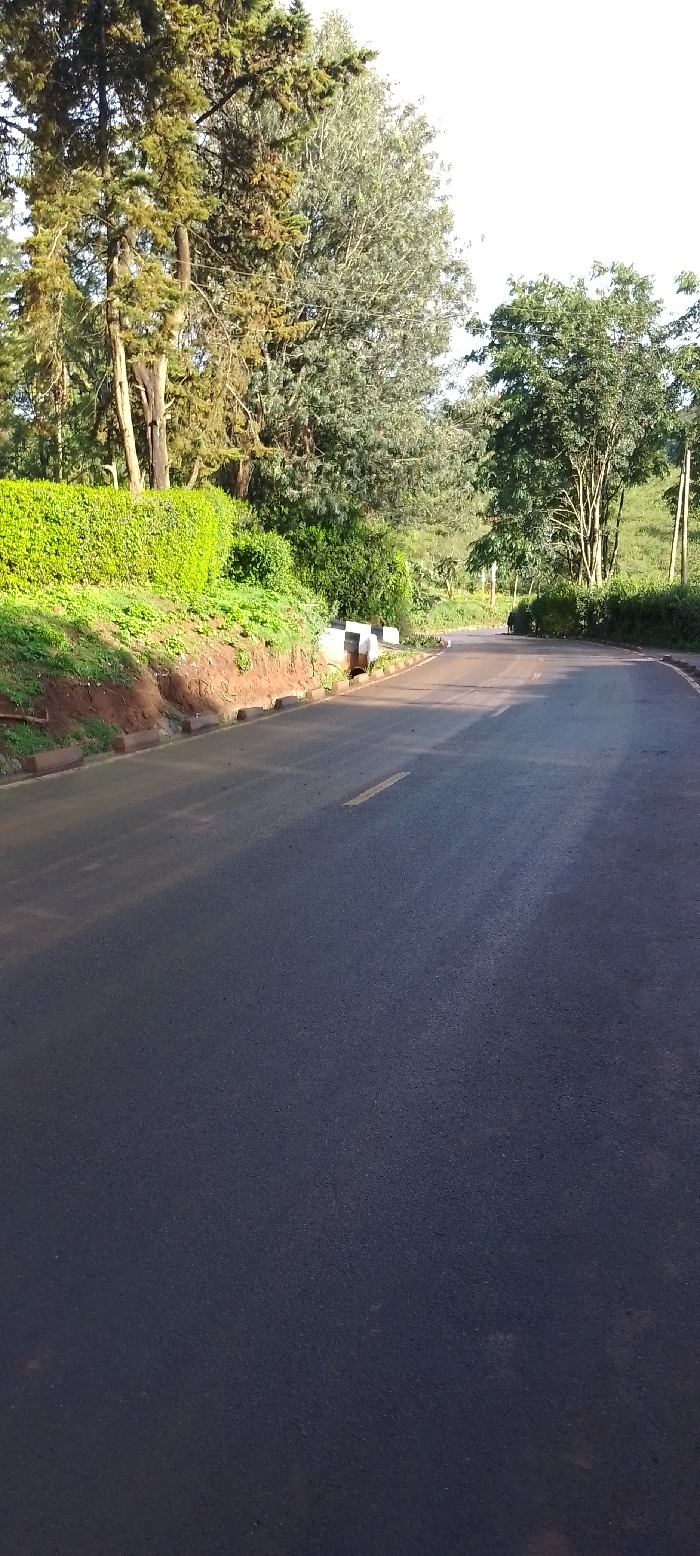 The image depicts a paved asphalt road in Ngong ward, Kenya, captured during daylight hours