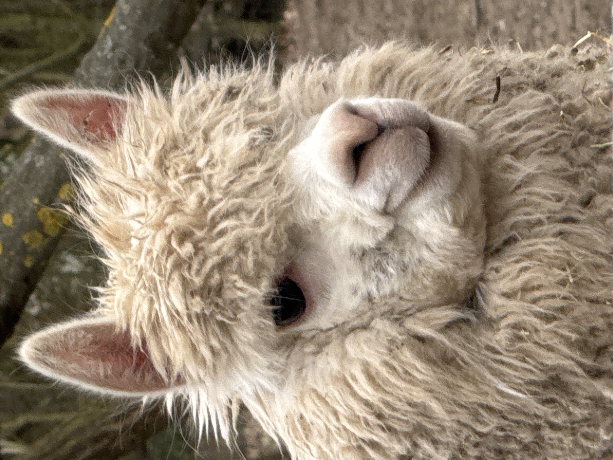 close-up of an alpaca's head