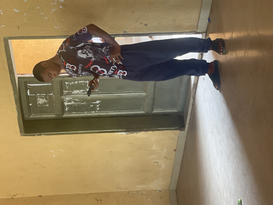 The image displays a male individual standing inside a room located in Okigwe, Nigeria
