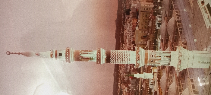 - "An aerial view showcases a towering minaret, its intricate design ascending towards a hazy sky" by FM-MM3Sy2, licensed under CC BY 4.0