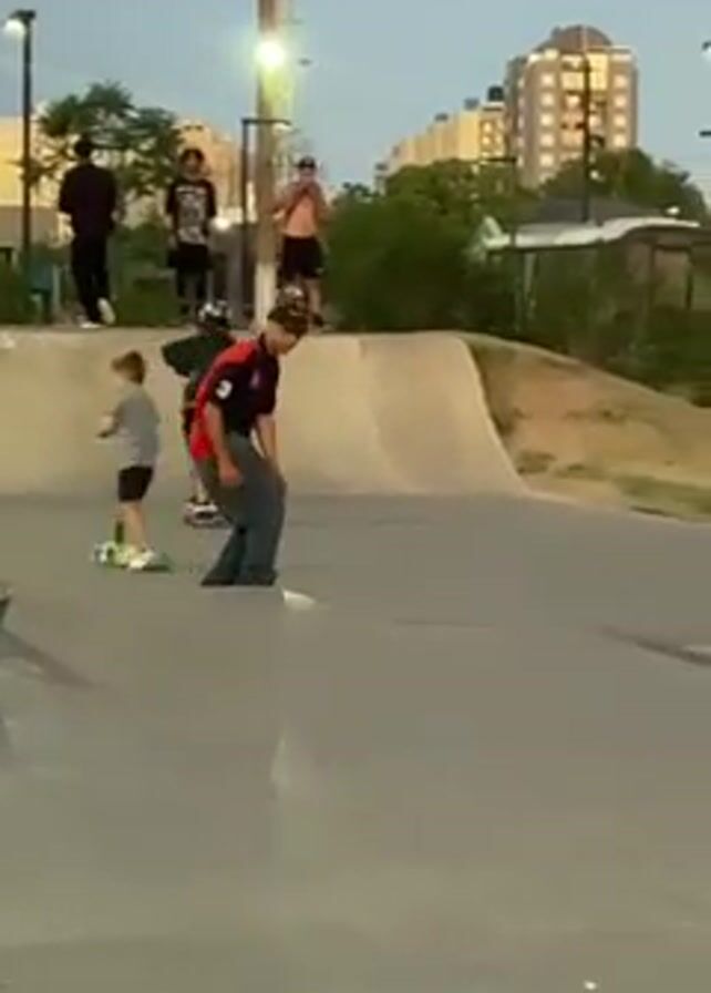 - "group of people at a skate park, with a man in a red and black shirt and loose gray pants skateboarding" by FM-faLbl2, licensed under CC BY 4.0