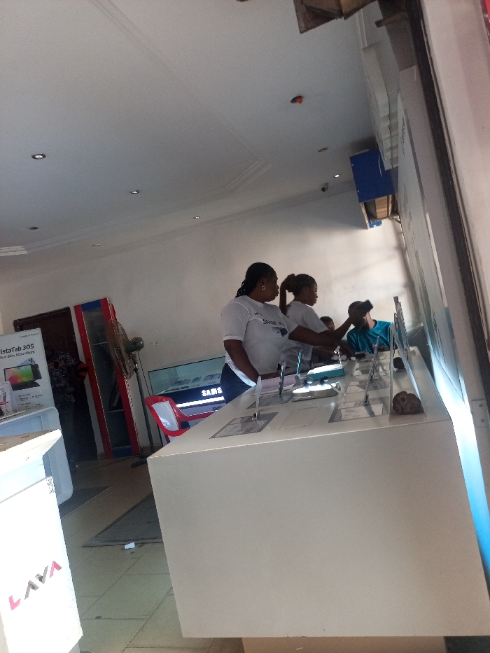 This image depicts the interior of an electronics retail store in Lokoja, Nigeria