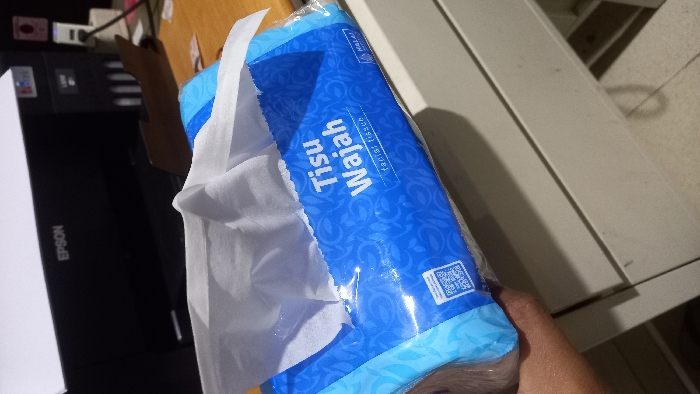 - "A human hand with light skin tone holds a blue plastic-wrapped pack of "Tisu Wajah" (facial tissue) with a white tissue partially extended from its opening" by FM-FrMp53, licensed under CC BY 4.0