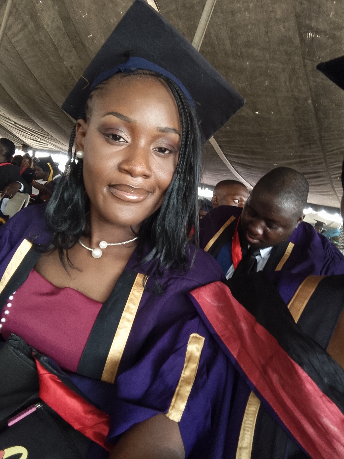 The scene is an indoor event, possibly a graduation ceremony, under a light-colored fabric tent in Unknown, Unknown