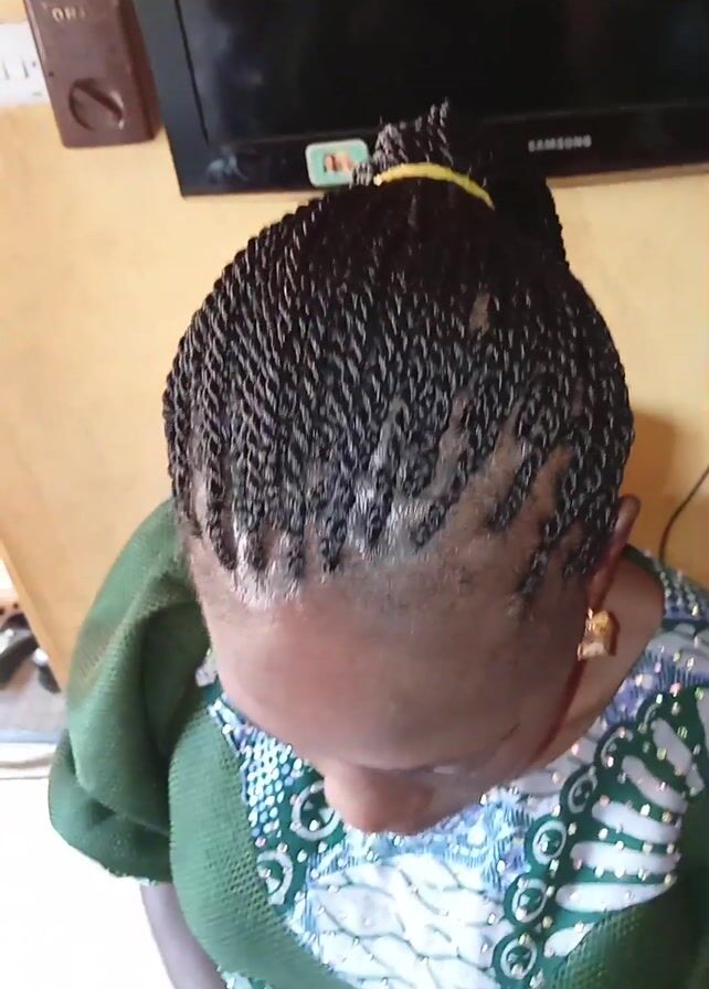 - "top of a woman's head with a hairstyle of small twists or braids pulled into a high ponytail and secured with a yellow hair tie" by FM-t5zcv2, licensed under CC BY 4.0