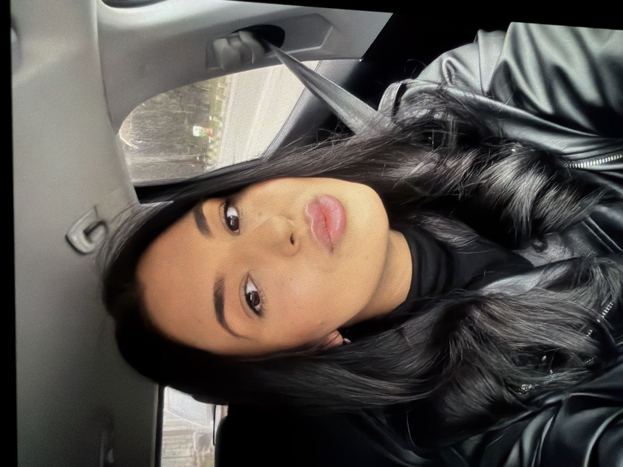 - "A female subject with long, dark, wavy hair is shown from the upper torso, seated in what appears to be the passenger side of a vehicle" by FM-IaUm62, licensed under CC BY 4.0