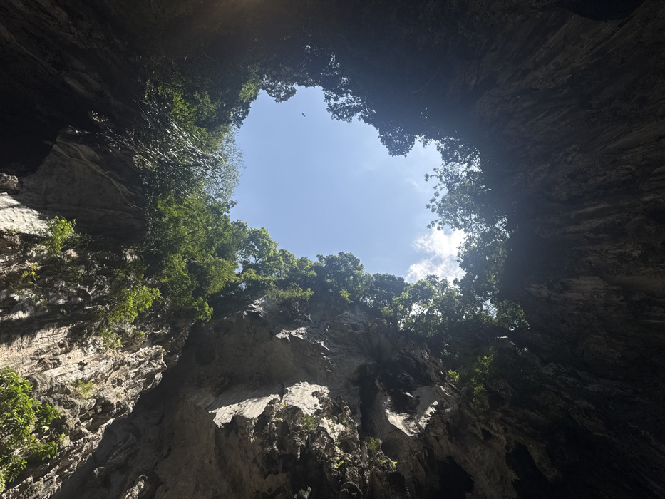- "This image presents an upward perspective from inside a large natural limestone cave, identified as a feature within the Batu Caves complex, located in Selayang, Selayang Municipal Council, Malaysia" by FM-xTDQG2, licensed under CC BY 4.0