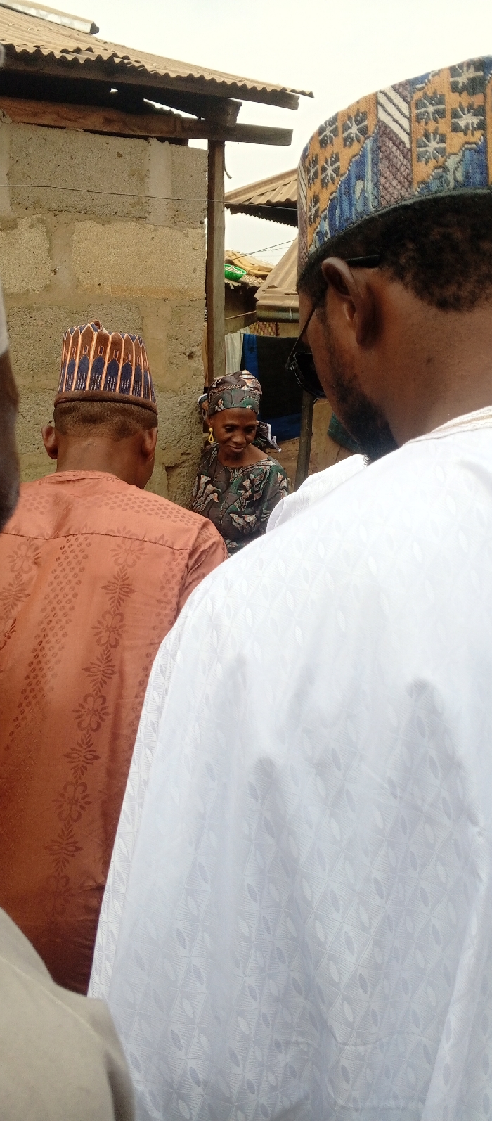 The image depicts an outdoor scene in Toto, Nigeria, featuring three individuals in close proximity