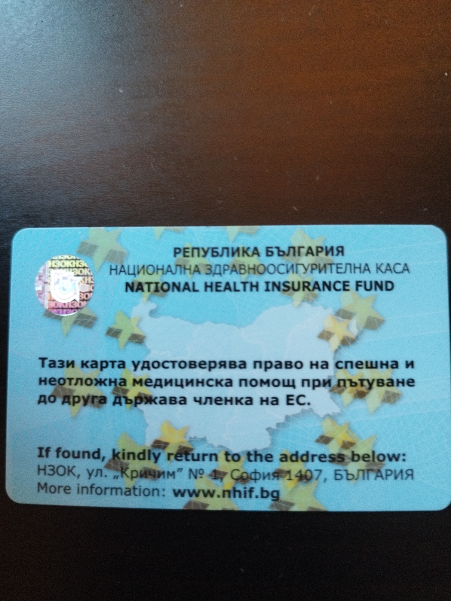 Bulgarian National Health Insurance Fund card