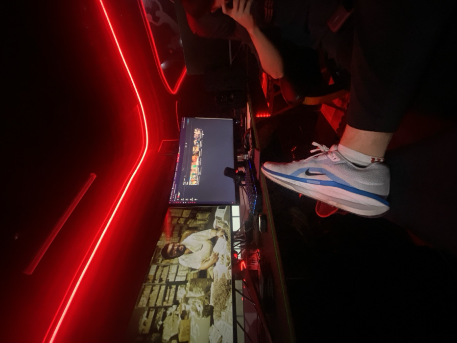 - "A dimly lit room featuring a black desk setup, illuminated by red neon lights along the wall" by FM-TO6gh1, licensed under CC BY 4.0