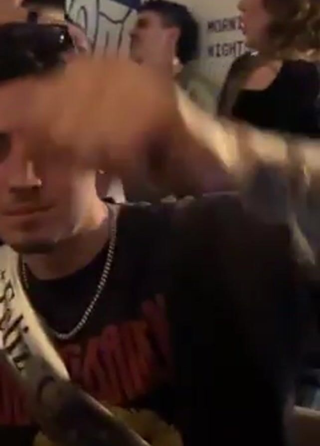 A handheld camera captures a man celebrating his birthday in what appears to be a restaurant or bar