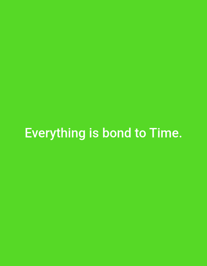 The image displays a uniform lime green background. Centrally positioned on this background is white, sans-serif text that reads: "Everything is bond to Time." No individuals, actions, interactions, or physical objects are present. The environment is entirely digital and abstract, lacking any discernible physical location or urban context. The location is therefore documented as Unknown, Unknown.
