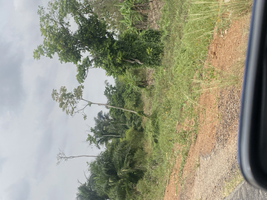 This image displays an outdoor scene within the city of Owo, Nigeria, characterized by dense vegetation under an overcast sky
