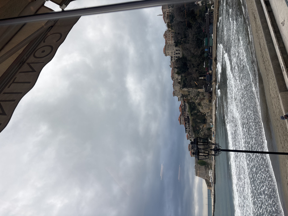 - "The scene depicts a coastal view of Ulcinj - Ulqin, Montenegro, captured from an elevated interior vantage point, indicated by a partial, inverted reflection of "CONTINI" on an awning in the upper right quadrant" by FM-CAOHw1, licensed under CC BY 4.0