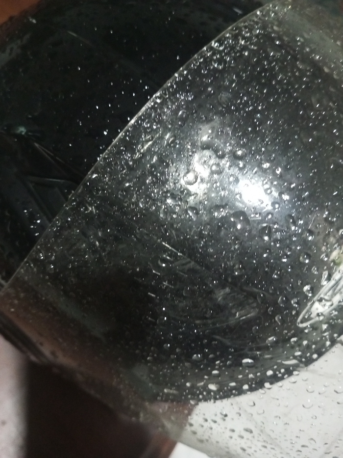 - "This image, captured in Ciherang, Indonesia, presents a close-up, angled view of a transparent or translucent curved surface, consistent with a visor or windshield, extensively covered in water droplets of various sizes" by FM-9CukC3, licensed under CC BY 4.0