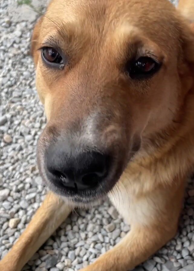 - "A close-up shot features a medium-sized brown dog lying on a bed of small grey rocks" by FM-XvSzv1, licensed under CC BY 4.0
