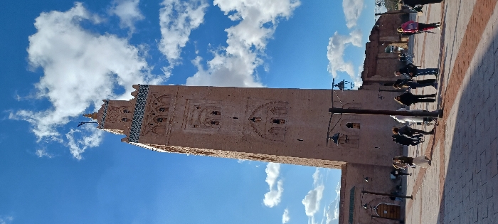 - "This image depicts the Koutoubia Mosque minaret and its surrounding plaza in Marrakesh, Morocco, under a bright blue sky with scattered white cumulus clouds" by FM-GJkLu1, licensed under CC BY 4.0
