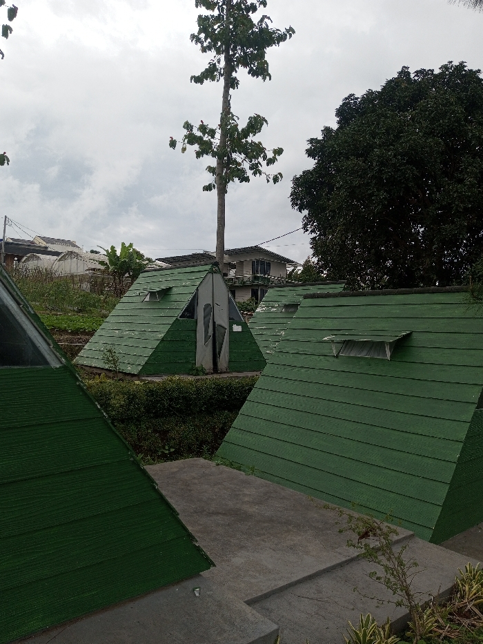 - "The image displays an outdoor scene in Abbireddygudem, India, featuring multiple green A-frame structures under an overcast sky" by FM-KHihw2, licensed under CC BY 4.0