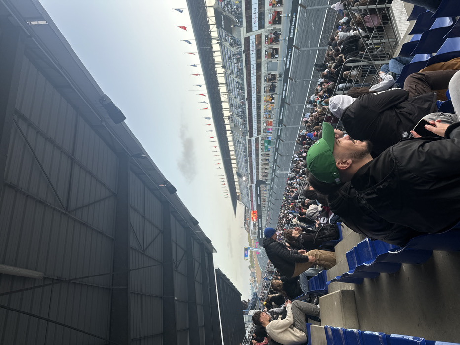 - "The image displays a crowded grandstand at the Circuit de la Sarthe in Le Mans, France, with a view of the racetrack and pit complex" by FM-FqKIp2, licensed under CC BY 4.0