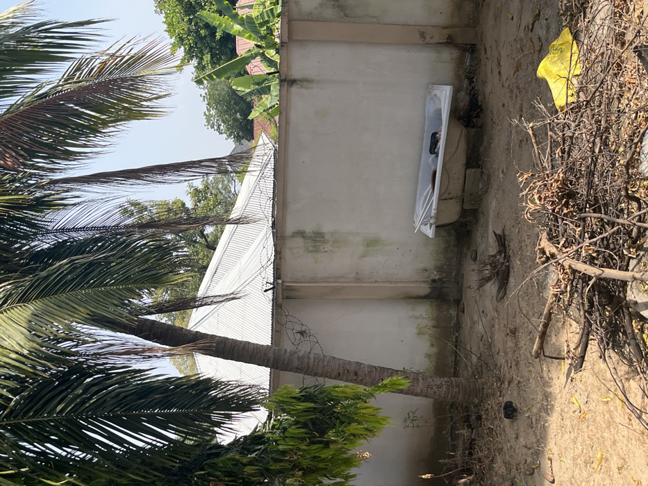 The image portrays an unpaved outdoor area in Lokoja, Nigeria, under a clear sky