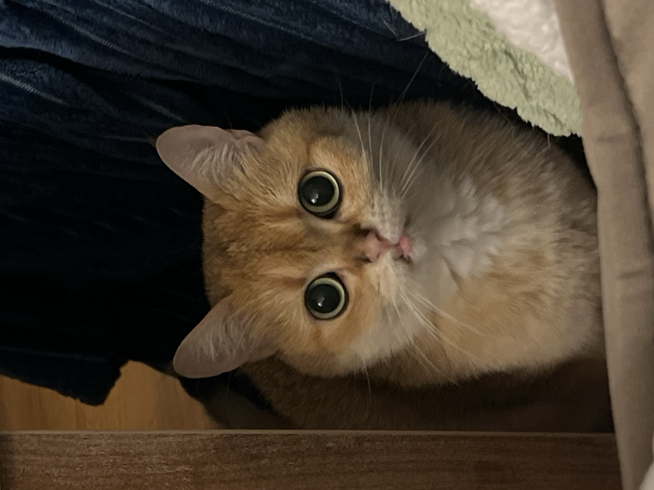 - "A light orange cat with large, round green eyes stares directly into the camera" by FM-aQUtB3, licensed under CC BY 4.0