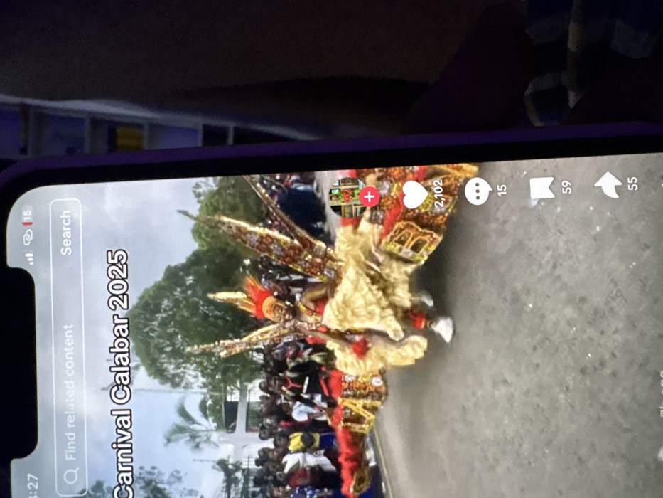A mobile phone displays a TikTok video featuring the Carnival Calabar 2025
