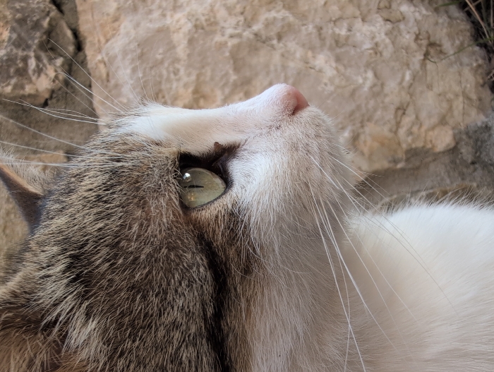 - "A domestic cat is depicted in a close-up, profile view, facing right, within an outdoor setting in Mirište, Montenegro" by FM-5itlR2, licensed under CC BY 4.0