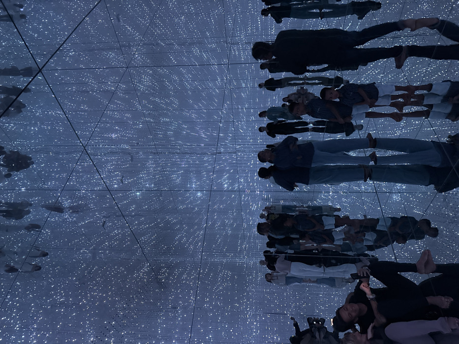 - "An immersive art installation, specifically a mirrored room with numerous small, white cascading lights, is depicted within teamLab Borderless in Koto, Japan" by FM-GMxhS2, licensed under CC BY 4.0