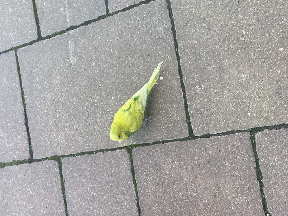 - "A single budgerigar (Melopsittacus undulatus), predominantly lime green with yellow markings on its head and breast, is depicted standing on a paved surface" by FM-jWoq23, licensed under CC BY 4.0