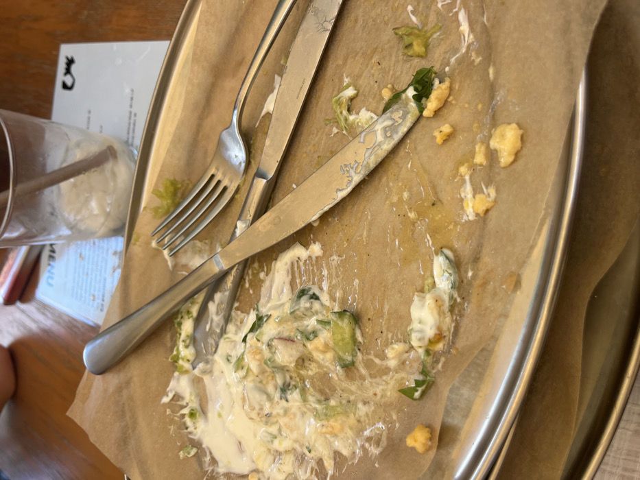 - "The image displays a post-meal scene on a wooden table at a Benedict restaurant in Tel Aviv, Israel" by FM-sACiC3, licensed under CC BY 4.0