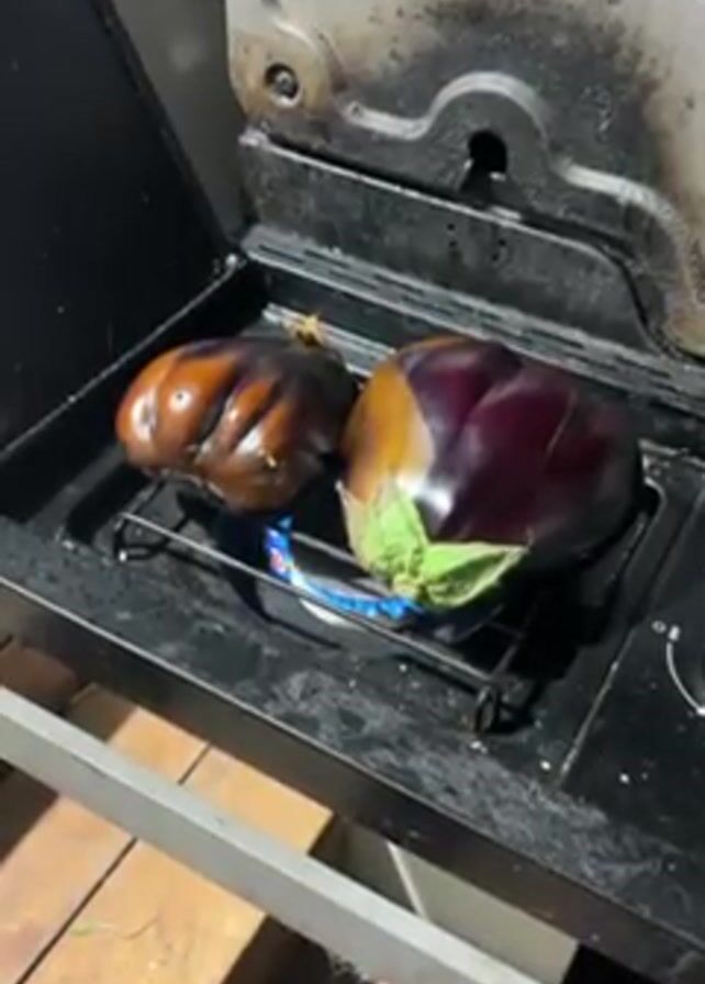 - "two eggplants roasting on a gas stovetop" by FM-EX2Rv2, licensed under CC BY 4.0
