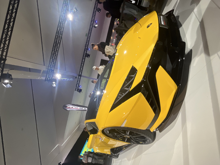 - "A bright yellow, heavily modified Lamborghini Huracán supercar is prominently displayed indoors on a light-colored floor" by FM-eWTi73, licensed under CC BY 4.0
