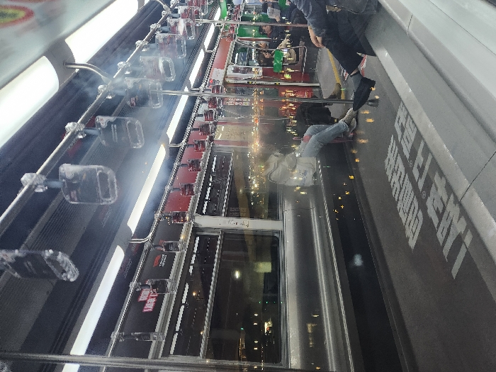interior of a Chongqing Rail Transit train, located in Liangjiang, China, during nighttime