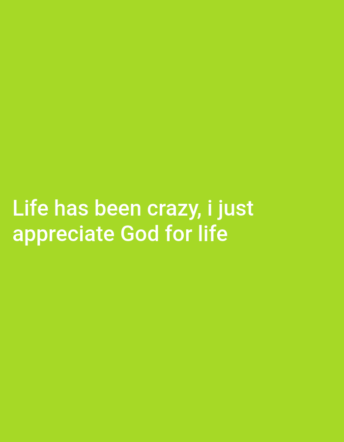 A lime green background features white text stating, "Life has been crazy, I just appreciate God for life
