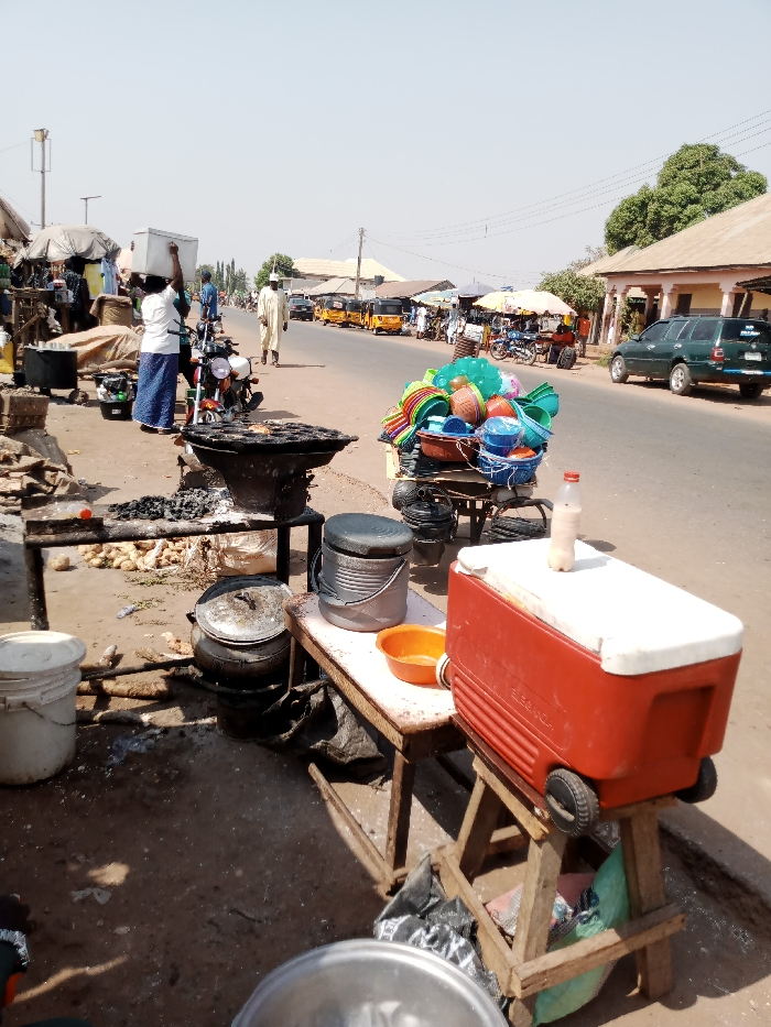 - "The image displays an active outdoor market on a sunny day in Rido, Nigeria, along a paved road" by FM-olfS63, licensed under CC BY 4.0
