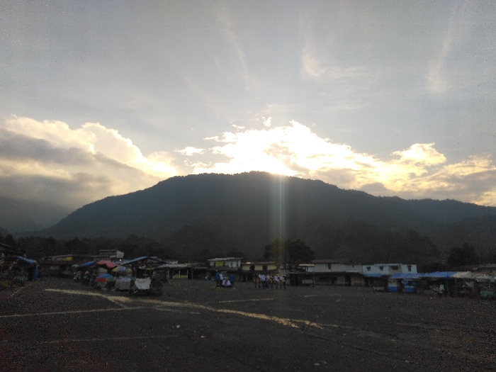 This image captures an outdoor scene in Los Teques, Venezuela, at either sunrise or sunset